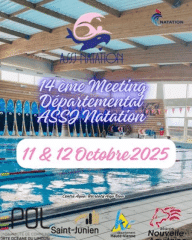 14ᵉ Meeting de l’ASSJ Natation Vienne Glane (11 et 12 octobre 2025) - Le club ASSJ Natation Vienne Glane vous invite à son traditionnel meeting annuel ! Deux jours de compétition, de convivialité et de passion autour du bassin. Restauration sur place avec menus complets à 13 € // Réservez vos repas ici :